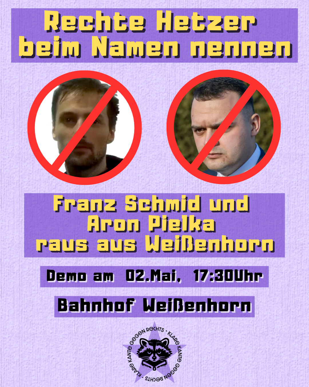Wir rufen die Stadtbevölkerung Weißenhorn dazu auf, gemeinsam klare Kante gegen rechts zu zeigen und sich unserer Demo vom Bahnhof zur Stadthalle in Weißenhorn anzuschließen.